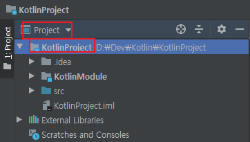 처음 프로젝트 생성 후 좌측 리스트를 보면 기본적으로 프로젝트 단위로 구성을 볼 수 있습니다.