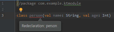별 문제 없이 정의가 됩니다. 이제 package com.example.ktmodule를 주석처리 해 봅시다.