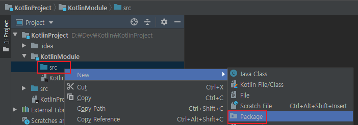 com.exampple.ktmodule패키지를 생성 후 실제 폴더가 어떻게 생성되었는지 확인해 봅시다.