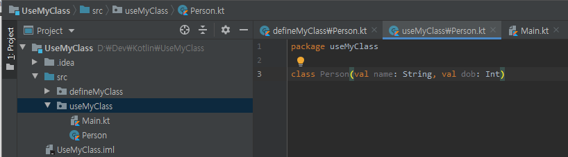 defineMyClass 패키지 아래 Person 클래스를 생성하였습니다.
