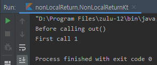 이렇게 람다함수에서 return을 만났지만 의도하지 않은 바깥함수인 inlineFun()가 반환 처리되는 것을 비지역 반환이라고 합니다.