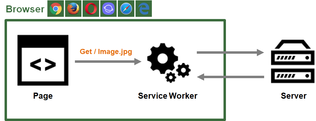 서비스 워커는 브라우저가 백그라운드에서 실행하는 스크립트로, 웹페이지와는 별개로 작동하고 클라이언트에 설치되는 프록시입니다. 브라우저 백그라운드에서 네트워크를 가로채는 Thread Thread라고 이해하시면 됩니다.