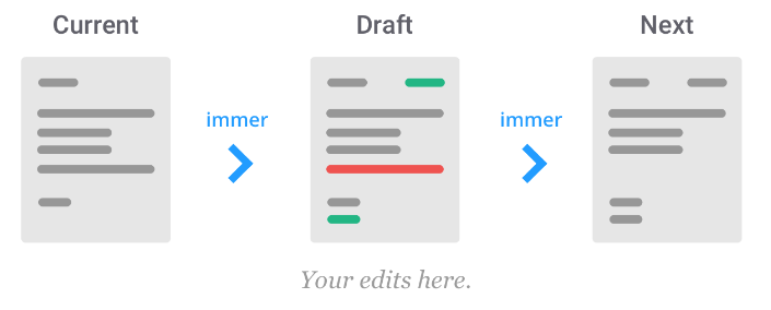 기본 아이디어는 모든 변경사항을 currentState의 프록시인 임시 draftState에 반영하는 것입니다.