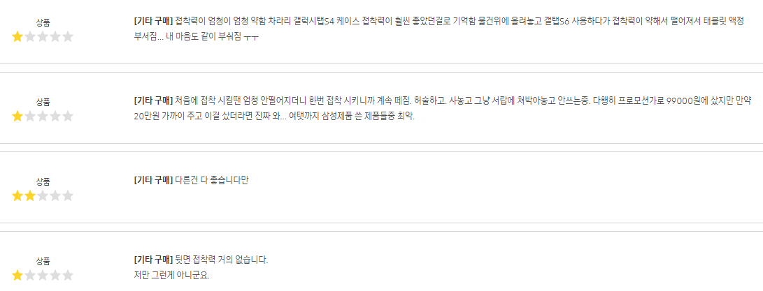 이 후면 커버에 접착 테이프 관련해서 논란이 좀 있습니다. 당장 삼성 공식 홈페이지의 후기만 봐도 알 수 있을 정도입니다.