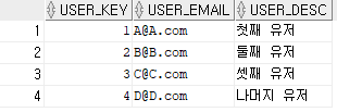 , DECODE(USER_KEY, 1, '첫째 유저', 2, '둘째 유저', 3, '셋째 유저', '나머지 유저') USER_DESC