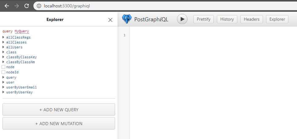 우리는 직접 리졸버를 만들지 않았습니다만 이미 우리가 만들었던 테이블을 쿼리 할 수 있는 옵션이 존재합니다. Postgraphile에서 알아서 해줍니다!