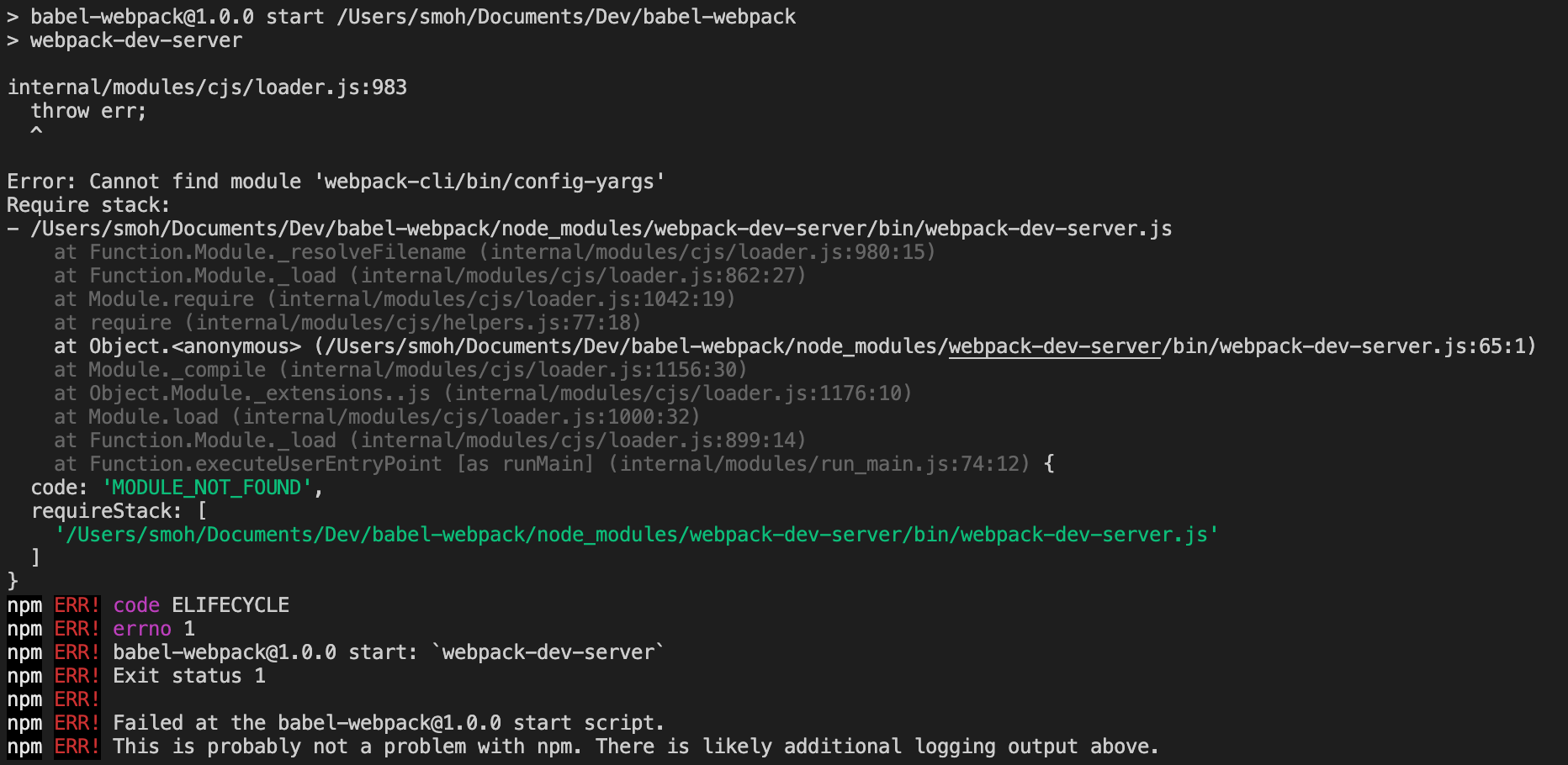 webpack-dev-server를 실행하면 Error: Cannot find module 'webpack-cli/bin/config-yargs' 와 같은 에러가 발생한다.