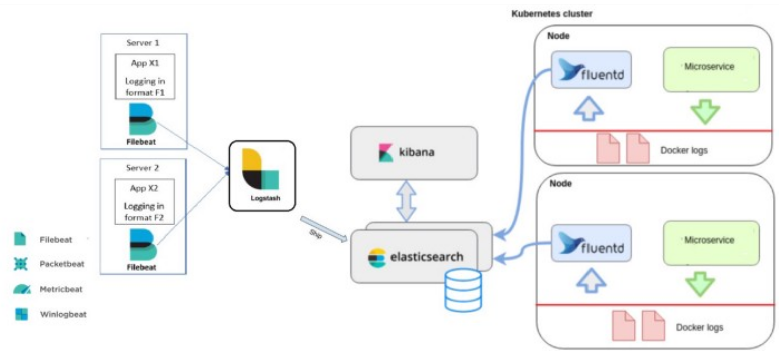 Docker 및 Kubernetes에서 호스팅 되는 마이크로 서비스의 경우에는 Fluentd가 기본 제공 로깅 드라이버와 원활한 통합을 고려할 때 훌륭한 선택으로 보입니다. json, nginx, grok 등과 같이 일반적으로 사용되는 모든 파서를 지원하기도 합니다.