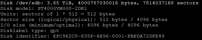 리눅스는 파일 시스템 구조상 2TB 이상의 마운트가 불가능합니다. 따라서 gpt로 파일 시스템을 변경해 주도록 하겠습니다. 다음 명령어를 통해 놀고 있는 디스크를 확인합니다.