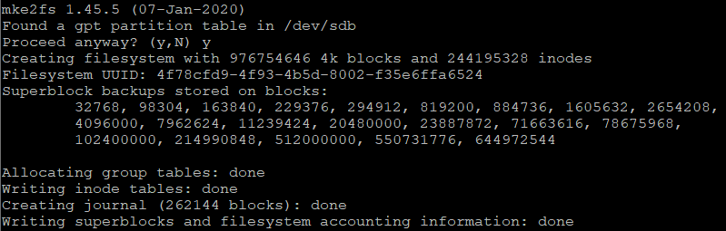 디스크 포맷이 완료되며 UUID가 변경되었음을 확인할 수 있습니다.