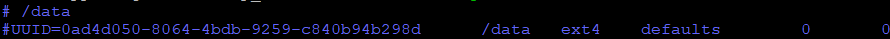 주석 처리 후 재부팅해줍니다. 재부팅 후 다시 다음 명령어로 디스크를 확인해 봅니다.