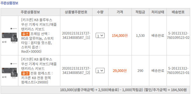 구매는 지티기어(http://gtg.kr/szdwx)에서 진행했고 직접 구매했습니다. 가격은 기본 가격 124,000에 알루미늄 프레임, 옵티컬 핫스왑 적축 옵션 3만 원을 추가해 154,000원입니다. 거기에 팜레스트 가격 29,000을 추가해 총 183,000원입니다. 결코 싼 가격은 아니라고 생각해요.