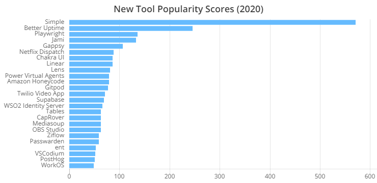 목차 1. 2021/01/29 - [Programming] - 2020년도 개발자들의 최고의 툴(1/2) 2. [현재 글] 2020년도 개발자들의 최고의 툴(2/2) StackShare Top Tools Awards 2020의 수상자 이어서 계속 알아보도록 합시다. 2020..