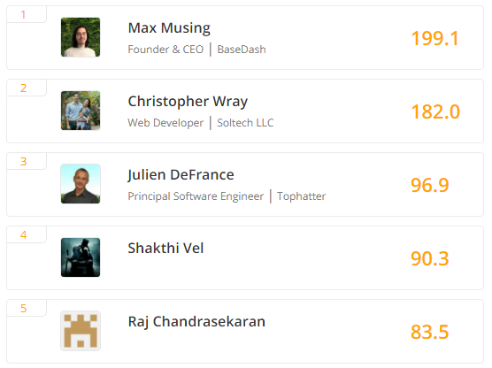 이 모든 멋진 스택에 조언을 제공하는 데 중요한 방법으로 기여한 수천 명의 개발자가 있지만, 아래 15 명은 누군가를 돕기 위해 기꺼이 시간을 많이 들였고 특별히 인정받을 자격이 있습니다.