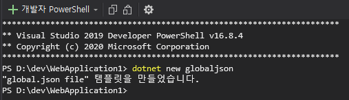 보기-> 터미널 혹은 Ctrl + `를 눌러 터미널을 열고 "dotnet new globaljson"을 입력합니다.