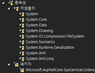 이게 대체 무슨 상황인가 하고 Solution 구성을 뒤져보니 종속성 항목이 좀 이상해 보이는 게 눈에 들어왔습니다.