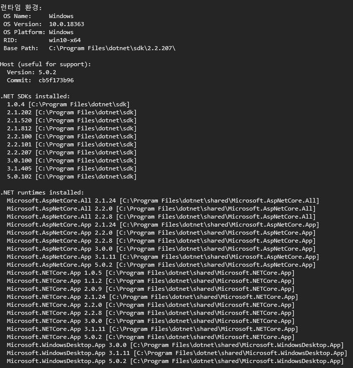 아무 생각 없이 넘어갔었는데 경로가 뭔가 이상했습니다. 해결책 1에서 dotNet 5.0을 재설치할 때 확인한 화면하고 뭔가 달랐습니다.