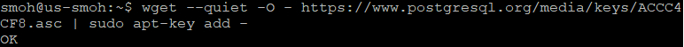 > wget --quiet -O - https://www.postgresql.org/media/keys/ACCC4CF8.asc | sudo apt-key add -