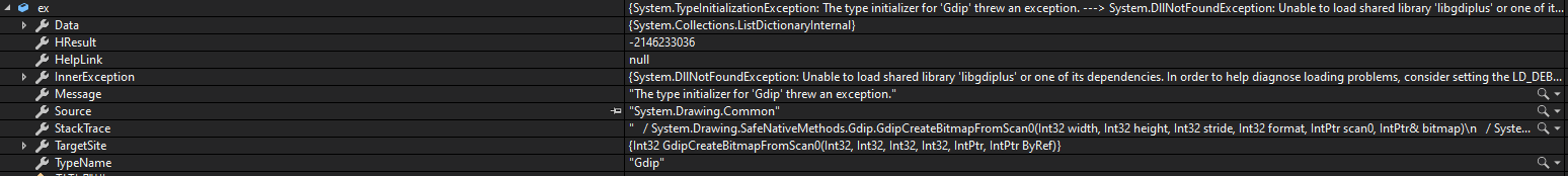프로젝트에서 System.Drawing.Bitmap을 사용하려고 할 때 Exception이 발생하며 "The type initializer for 'Gdip' threw an exception."와 같은 메시지가 출력됩니다.