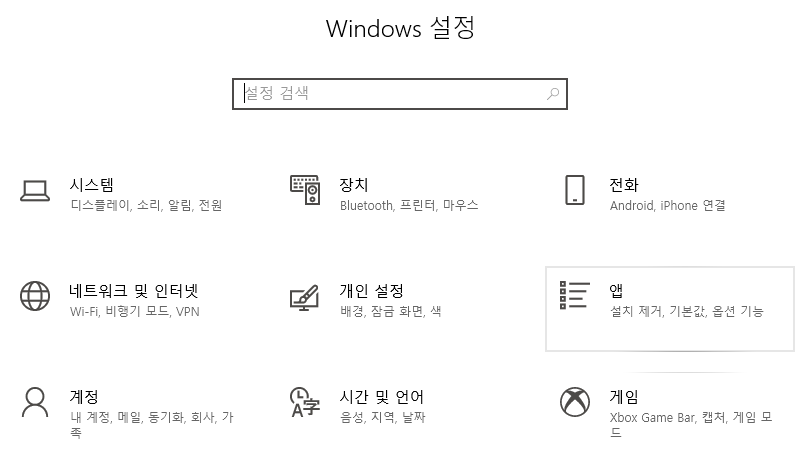 설정 앱에서 "앱" 항목을 클릭합니다.