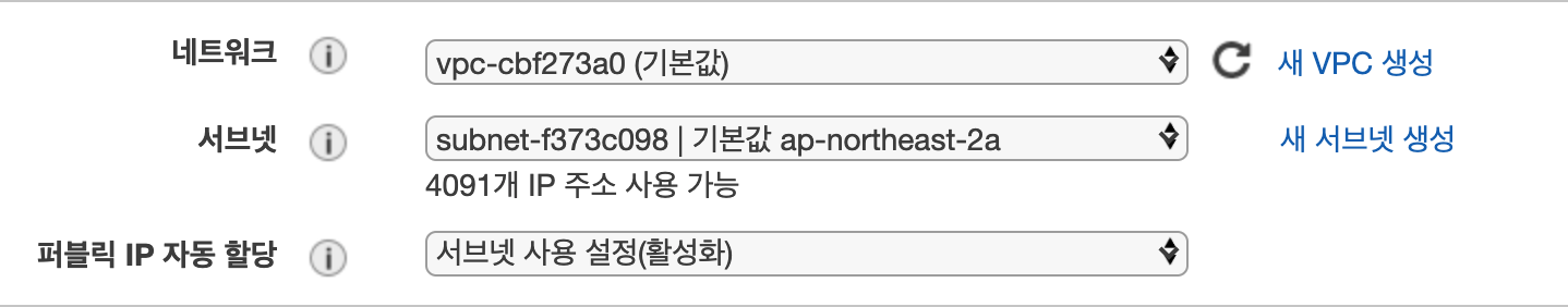 4. 이 데모에서 두 인스턴스를 서로 다른 가용 영역에서 동작하길 원하므로 두 인스턴스를 별도로 시작해야 합니다. 이 글에서 리전은 ap-northeast-2 이므로 서브넷은 ap-northeast-2a를 선택했습니다.