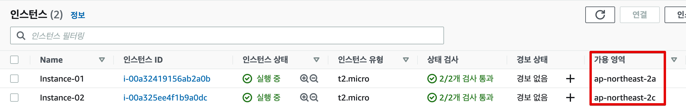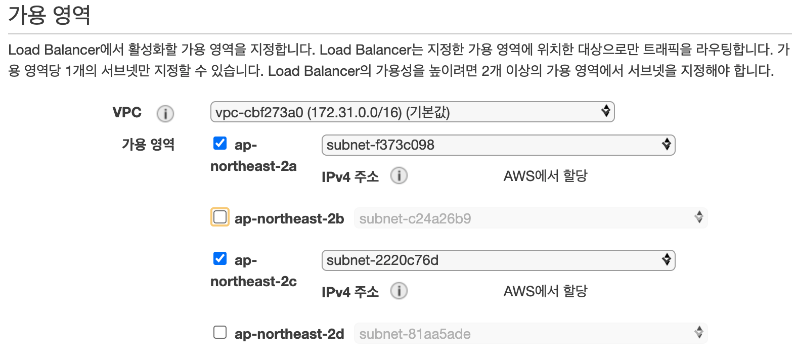 6. 앞서 인스턴스를 생성할 때 선택한 가용 영역을 고른 뒤 계속합니다.