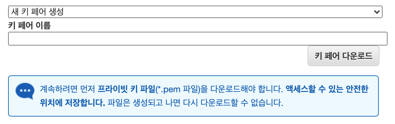 9. 인스턴스에 SSH를 위한 새 키 페어를 생성합니다. 나중에 앱이나 내부 로드 밸런서에 대한 Docker 이미지를 빌드하는데 필요합니다.