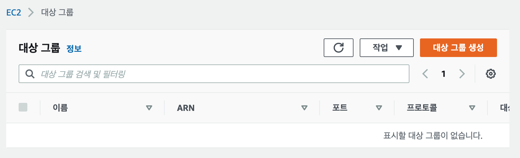 1. EC2 대시보드의 대상 그룹으로 이동해 대상 그룹을 만듭니다.