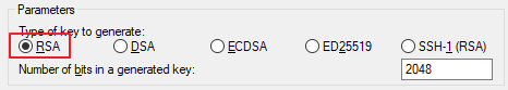 먼저 PuTTYgen을 실행해 Parameters의 Type of key to generate에서 RSA를 선택해 줍니다.