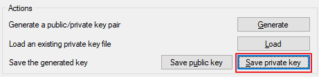 이제 Save the genereated key의 Save private key 버튼을 클릭해 .ppk 키 파일을 저장합니다.