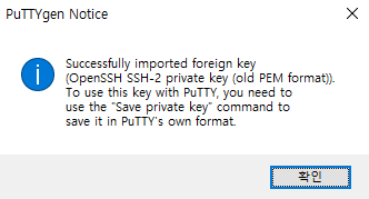 1. PuTTYgen을 사용하여 프라이빗 키 변환