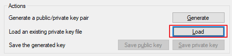 Actions의 Load an existing private key file에서 Load 버튼을 클릭해 .pem 키 파일을 로드합니다.