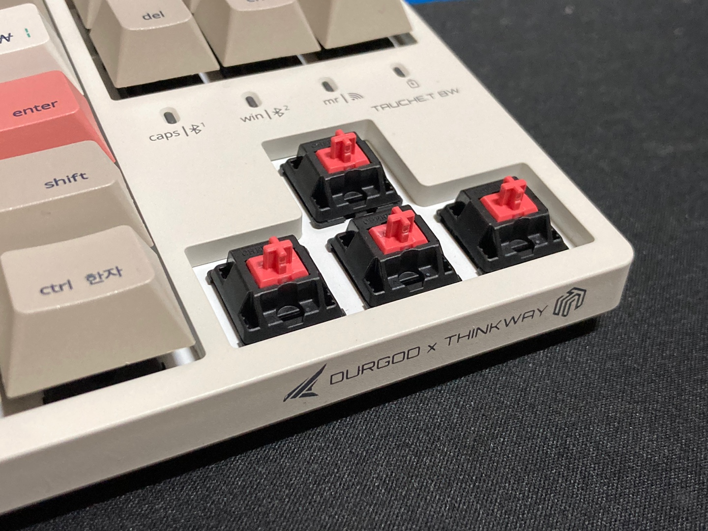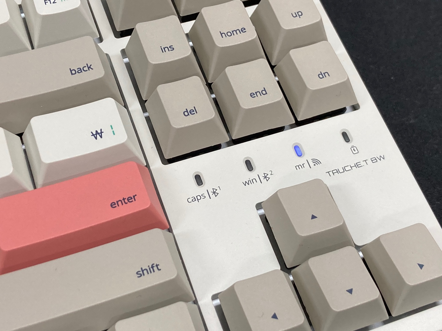 기다려서라도 바밀로 저소음 적축 모델을 사려고 했다가 마음이 틀어진 결정적 이유는 블루투스와 리시버를 통한 무선과 유선을 모두 지원한다는 점이 가장 크게 작용했습니다. 정방향 체리 스위치라 키캡을 변경하기에도 용이합니다.