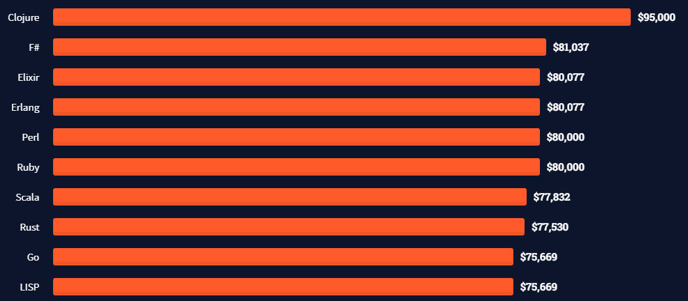 가장 많은 임금을 받는 프로그래밍, 스크립팅, 마크업 언어