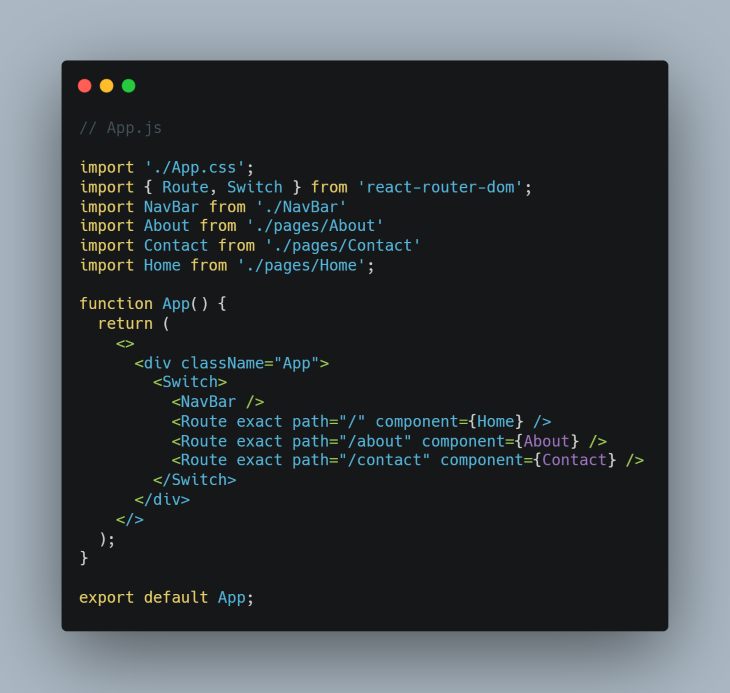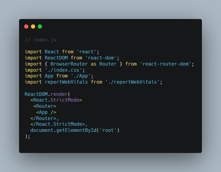 React 앱에서 라우팅을 설정하려면 일반적으로 react-router-dom 패키지를 설치하고 React Router DOM 패키지의 브라우저 라우터 모듈을 사용해 index.js에 전체 앱을 래핑 합니다. 그런 다음 App.js 구성요소에서 React Router DOM의 경로 모듈을 사용해 페이지를 렌더링 합니다.