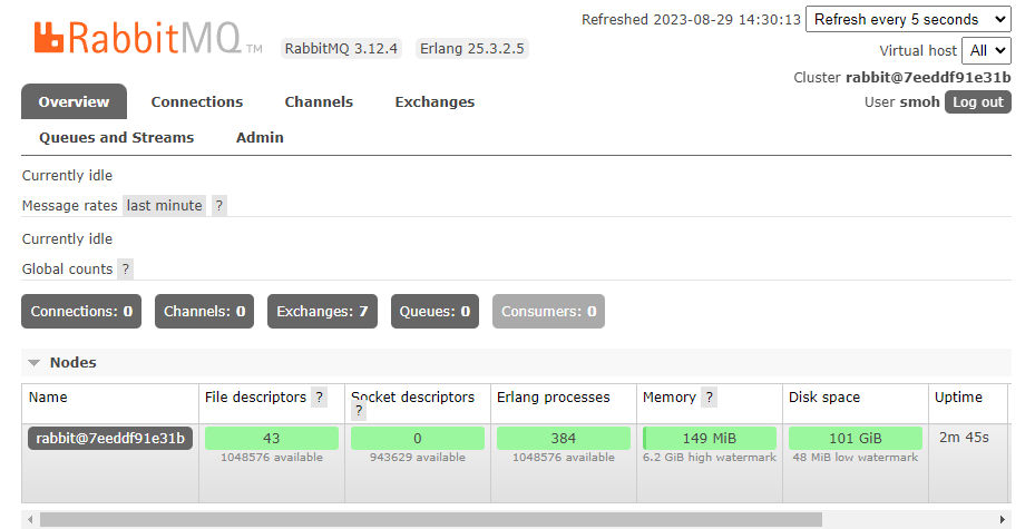 정리하자면 vhost는 하나의 브로커에서 여러 메시징 도메인을 가능하게 하는 논리적 컨테이너이며 이들 간의 분리와 메시징 트래픽을 컨트롤을 관리 유지 합니다.