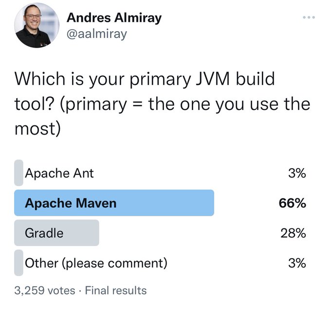 다른 다양한 이점도 있지만 여기까지만 들어도 모두가 다 Gradle을 사용하겠구나 생각할 수도 있습니다만 사실 Maven을 더 많이 사용한다고 합니다.